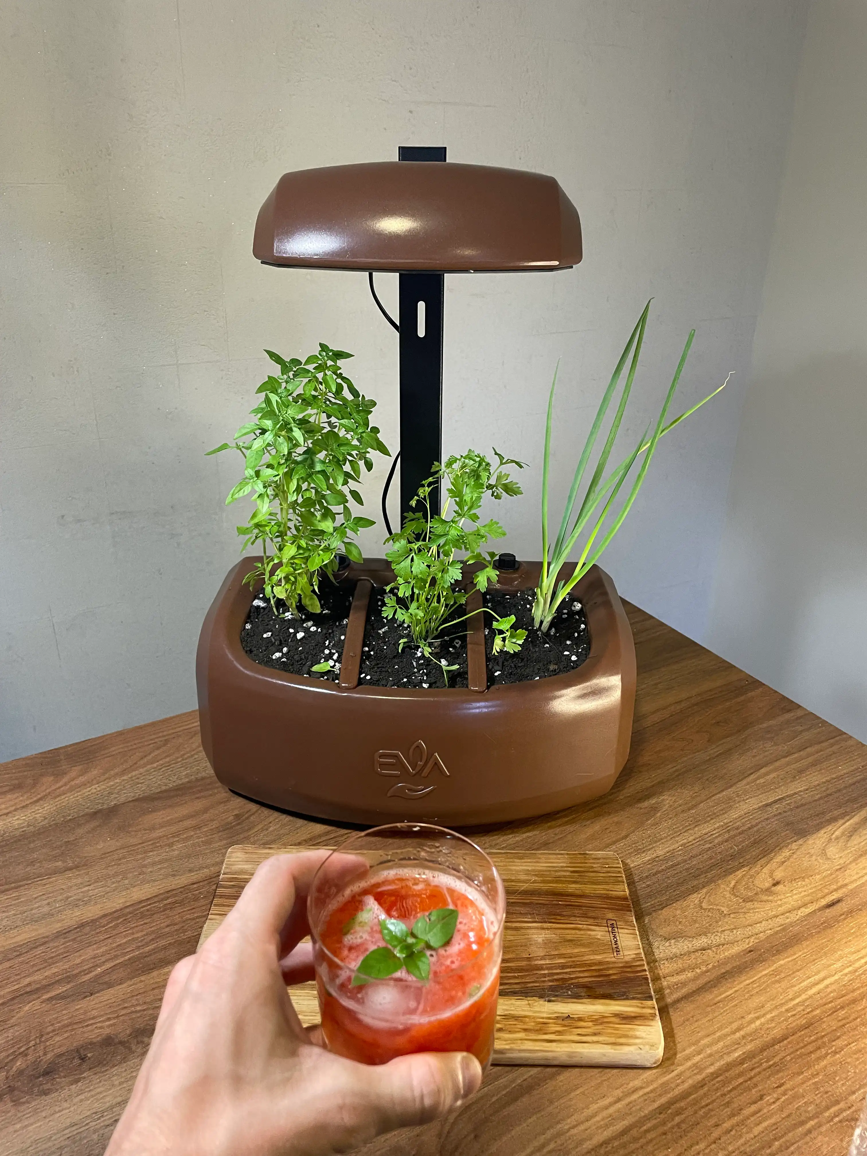 ESPAÇO: A EVA Baby é a primeira hortinha inteligente vertical do Brasil! Ou seja, o design dela permite que seja instalada em uma parede, otimizando esses espaços que normalmente ficam ociosos